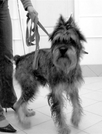 Ризеншнауцер Тубус. У него было время беззаботного щенячества, подростковой бесшабашности, его уважали за силу, мужество, красоту. Но время летит... он стал старым, больным - и вдруг не нужным. Он долго бродил по дворам небольшого подмосковного города. Его шерсть свалялась. На репьи он уже не обращал внимания. Он был стар и тяжело болен. Ноги не слушались его, но он все шел и шел, пытаясь вернуться домой. Когда мы нашли его, он уже не мог даже подняться.